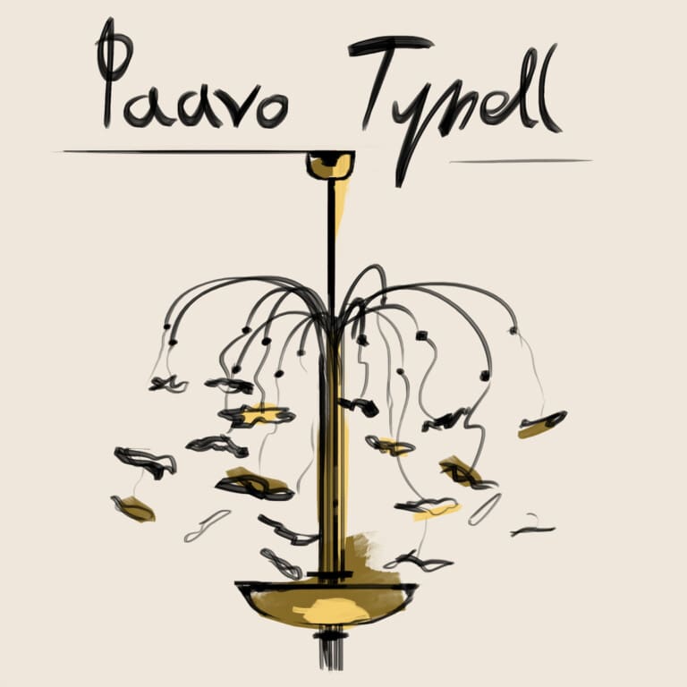 A pair of rattan cane and brass table lights by Paavo Tynell