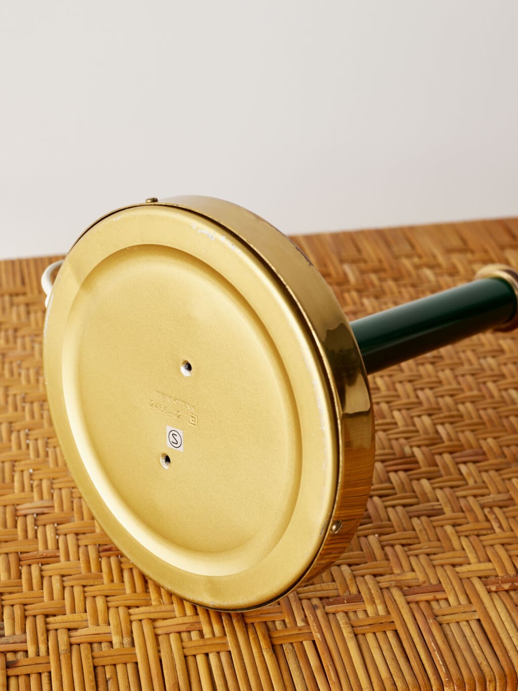 This Josef Frank table lamp, model number 2466, created for Svenskt Tenn, is a beautiful example of his unique blend of functional design and playful aesthetics. The addition of an eye-popping Muriel Brandolini fabric to the lamp that feautres a brass base partially lacquered in green, adds a subtle pop of color and creating an elegant contrast with the brass elements. This combination of polished brass and green lacquer enhances the lamp’s sophisticated yet lively character, typical of Frank’s designs. Known for his vibrant and organic approach, Frank designed pieces that feel timeless and are perfectly suited for adding both light and artistic flair to any interior.