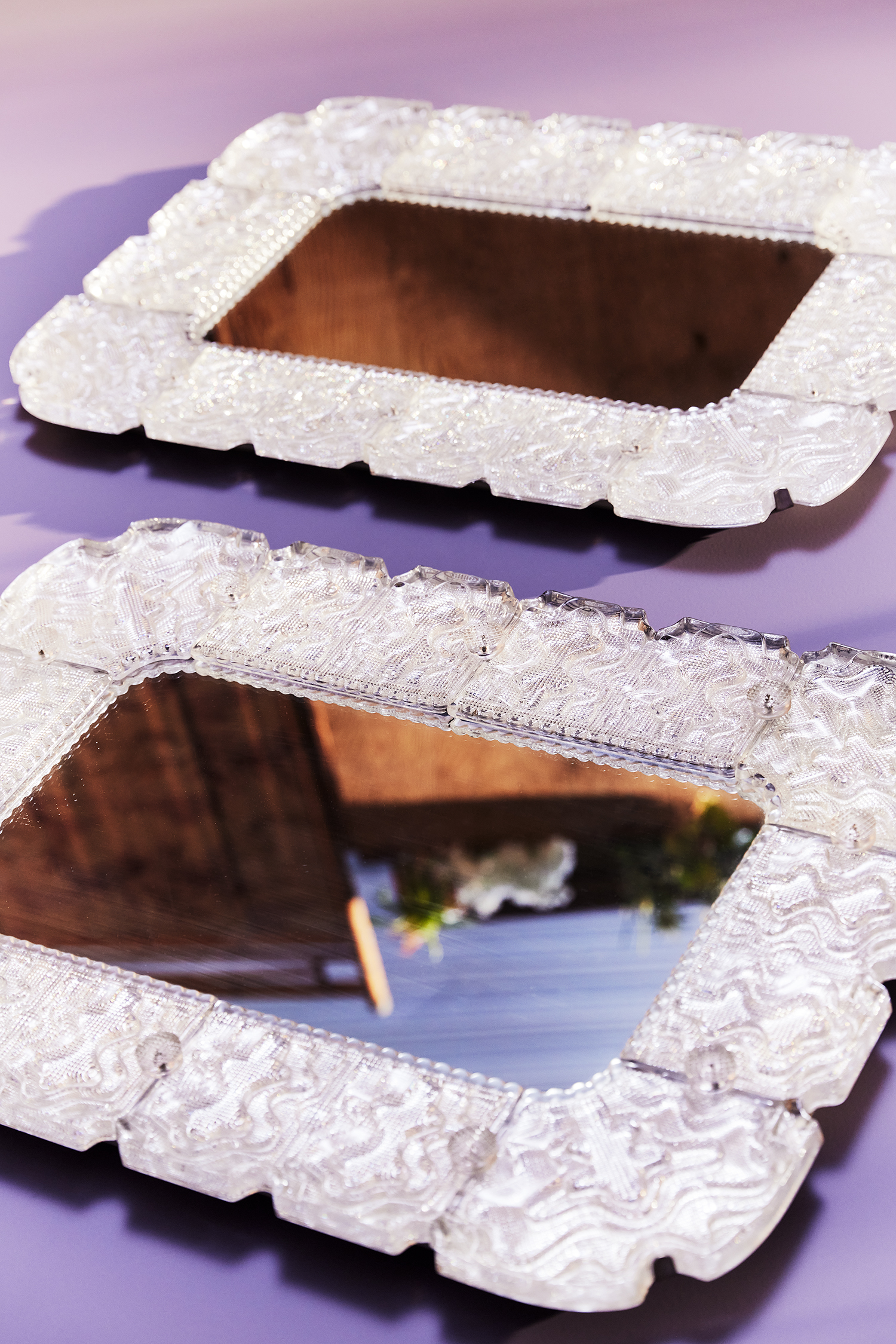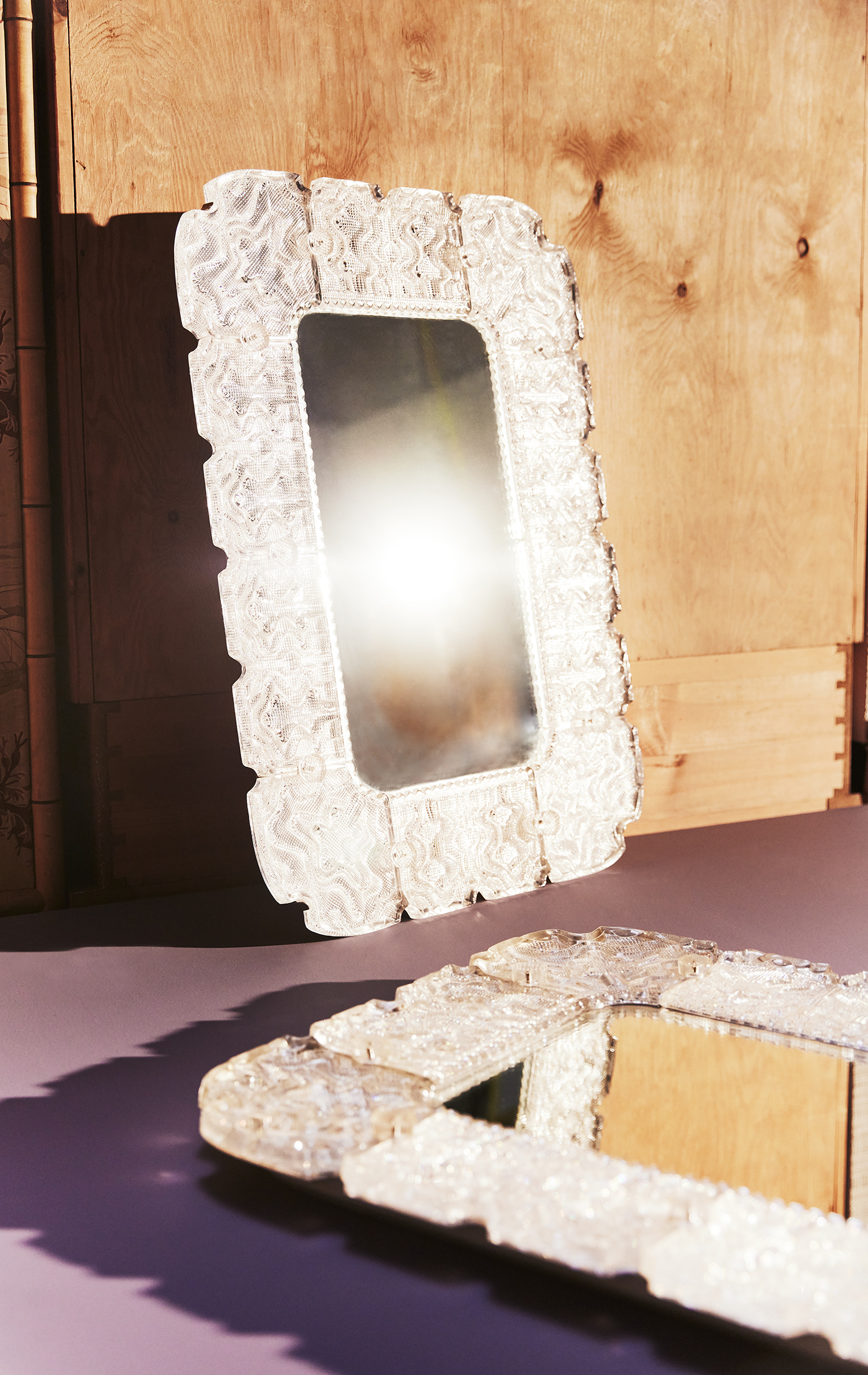 A pair of cast glass mirrors by Carl Fagerlund for Orrefors