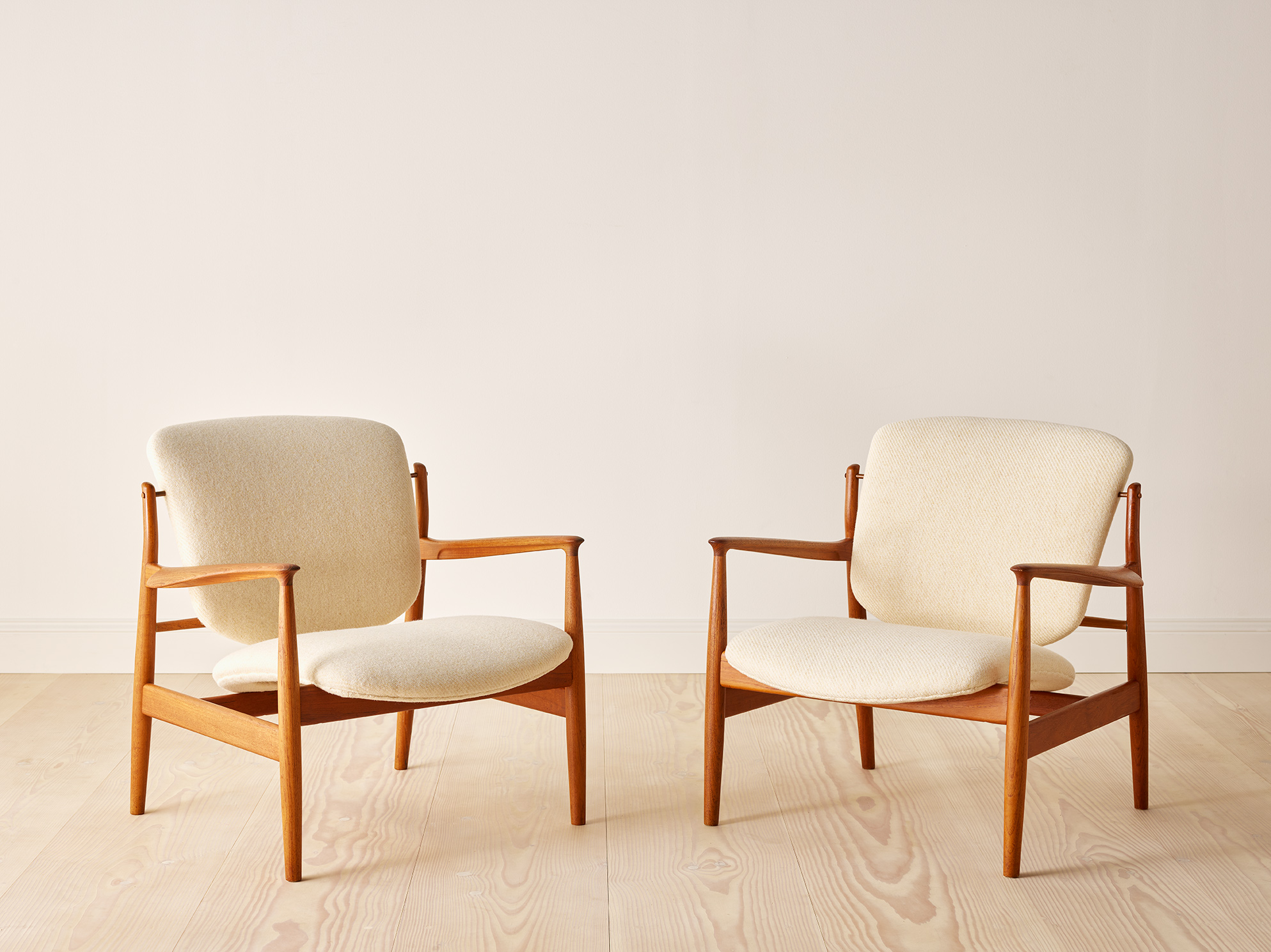 A pair of classic lounge chairs by extraordinary Danish furniture designer Finn Juhl, Model 136