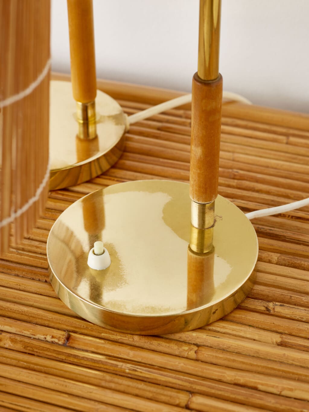 A pair of rattan cane and brass table lights by Paavo Tynell