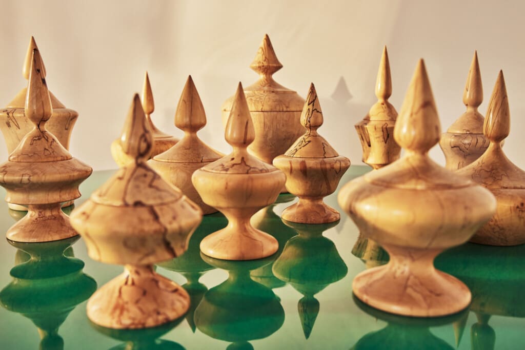 A set of twelve wooden bowls with lids by Oskar Johansson