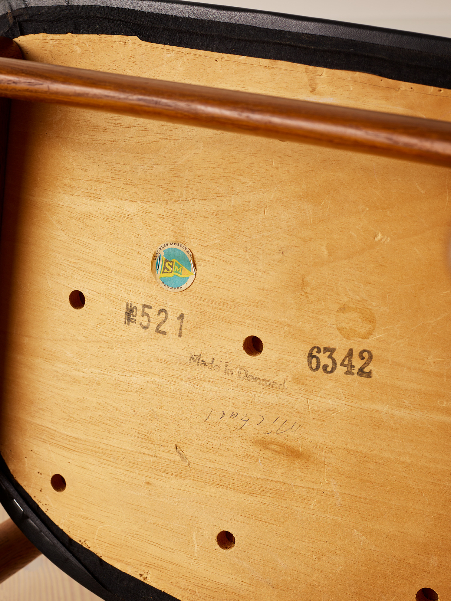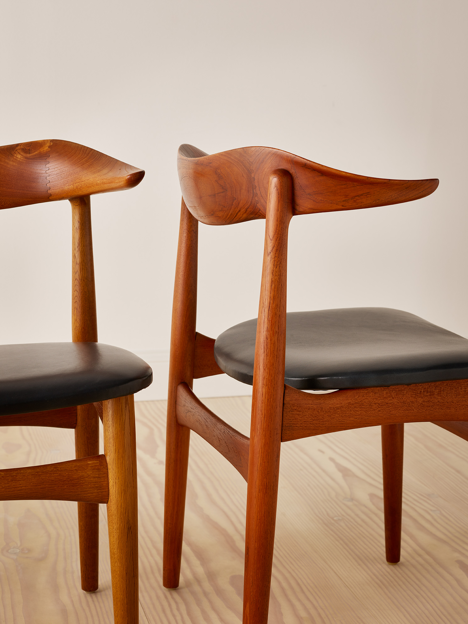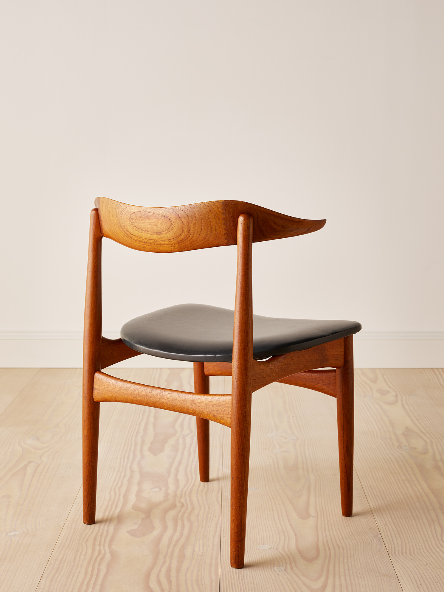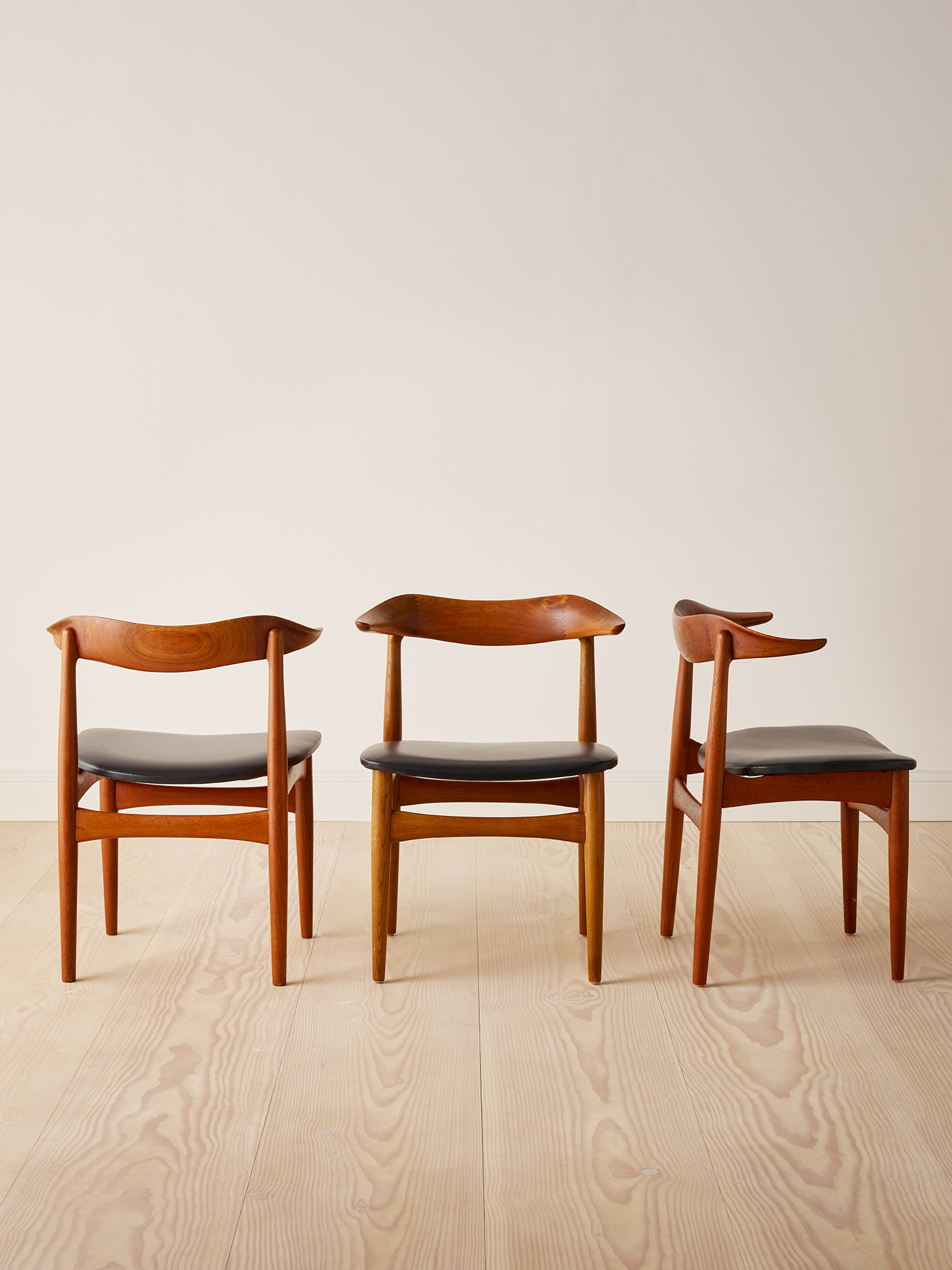 A unique set of 12 dining chairs in oak, teak and leather, Model SM521 “Cowhorn chair” by Knud Færch, 1950’s Denmark