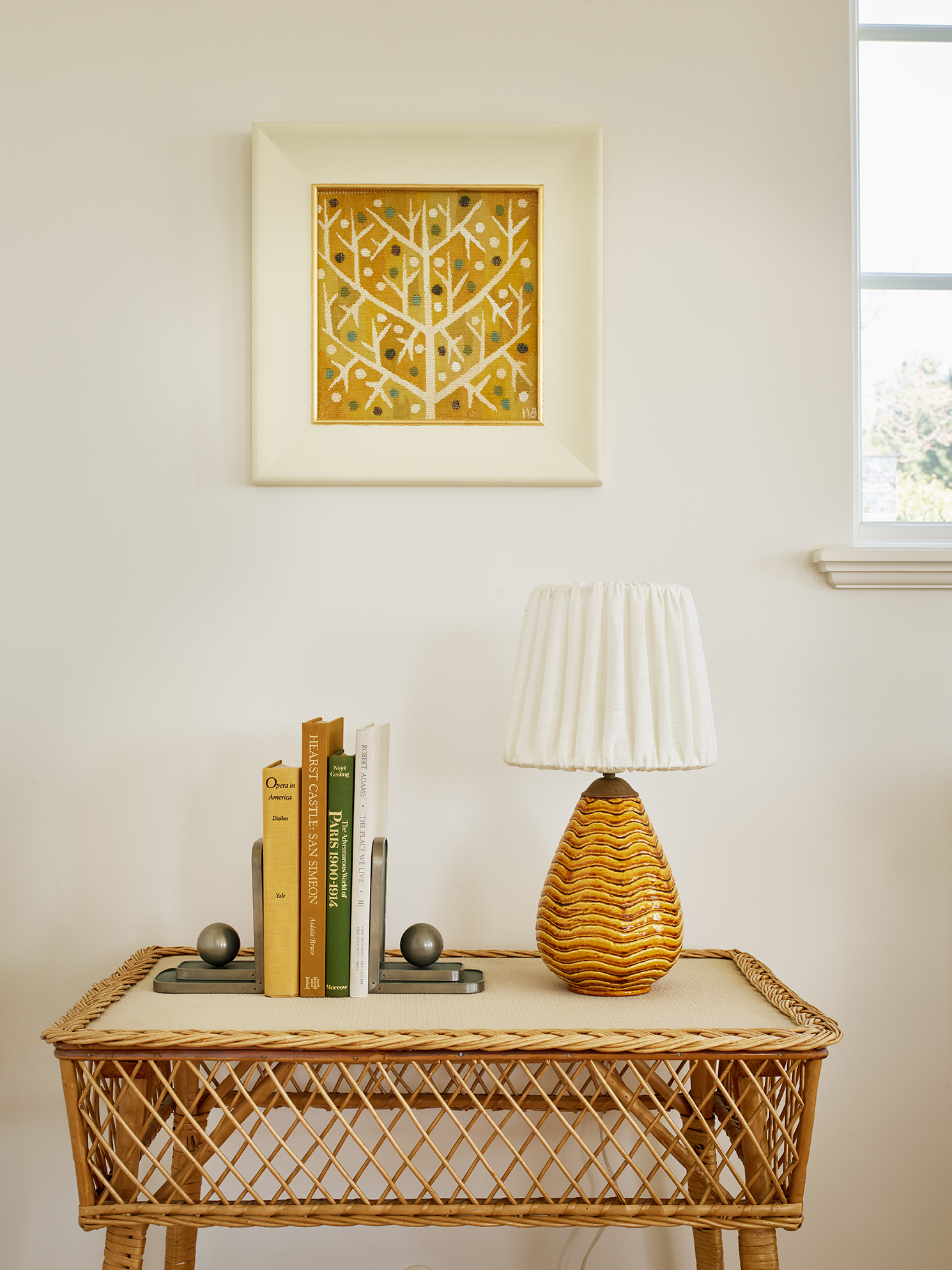 • A Josef Frank painted brass table light with Muriel Brandolini fabric