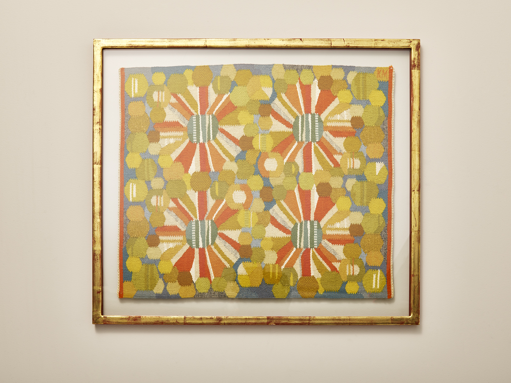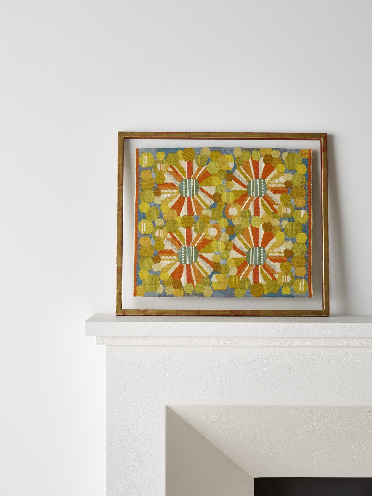 This beautiful flower print tapestry was designed and wowen by Kajsa Melanton, a Swedish textile artist known for her innovative approach to weaving and textile design. She studied at Konstfack, the University of Arts, Crafts, and Design in Stockholm, and became prominent in the 1960s and 1970s. Melanton’s work often featured bold colors, abstract patterns, and a deep connection to nature. She was part of the “10-gruppen,” a collective of Swedish designers focused on bringing fresh, modern design to textiles and everyday objects. Her contributions significantly influenced Scandinavian textile art and design.