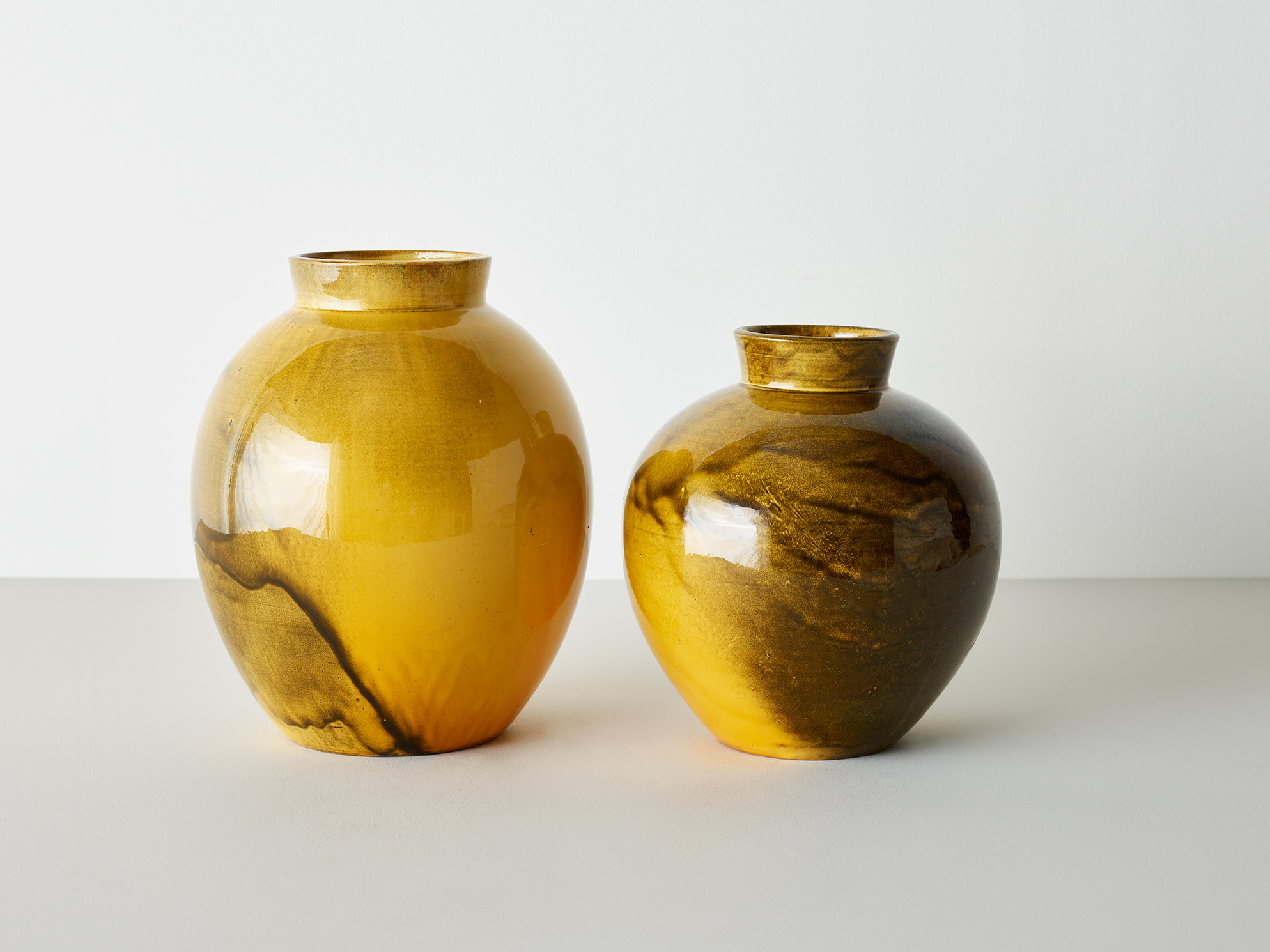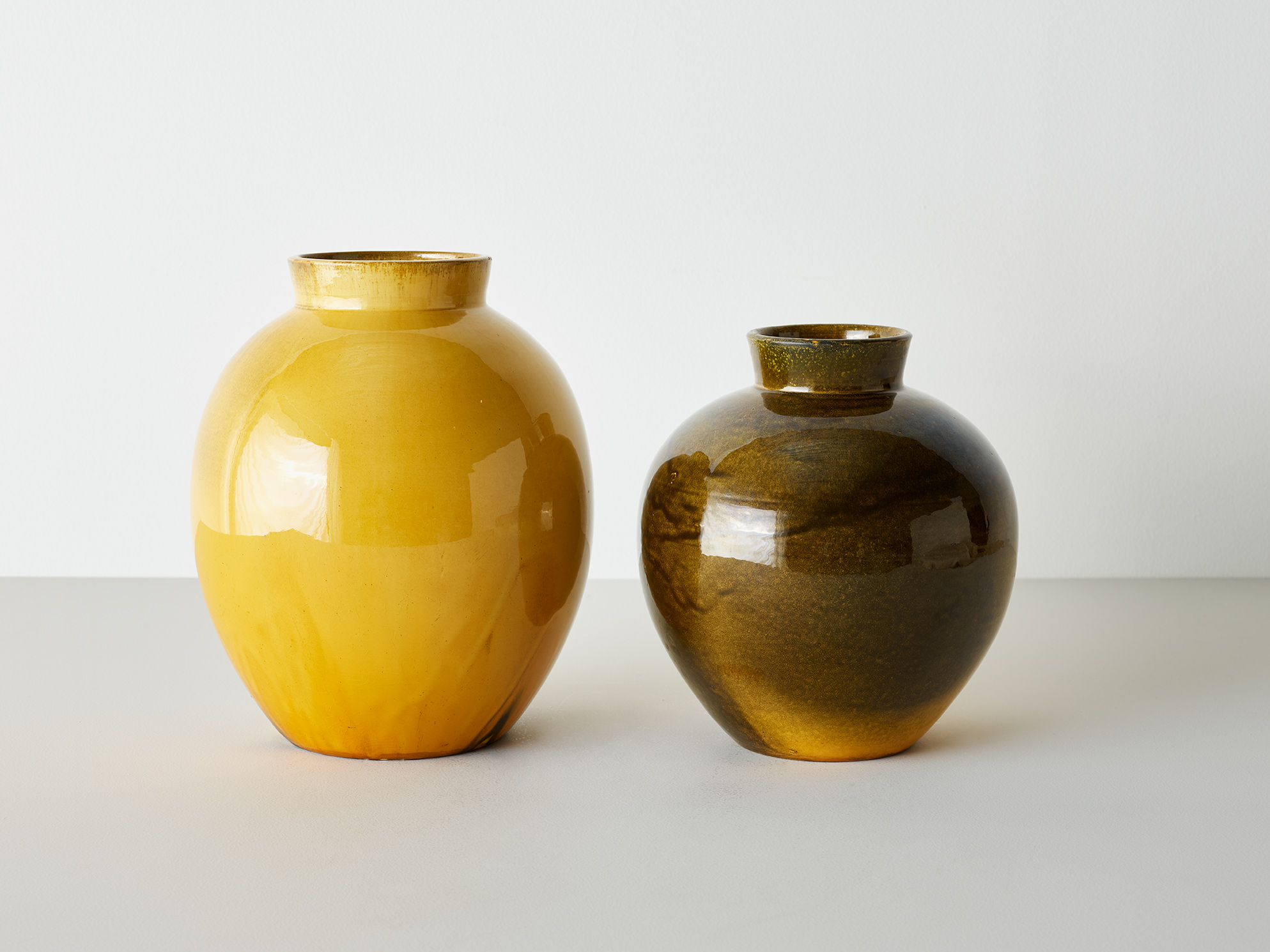 Two vases in yellow glaze by Herman A Kähler