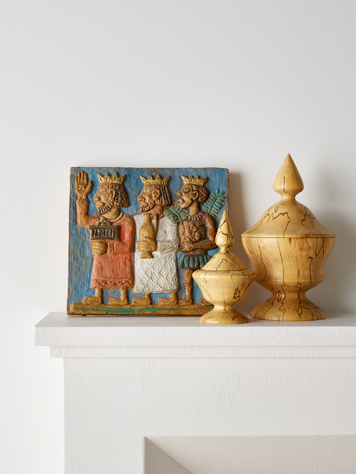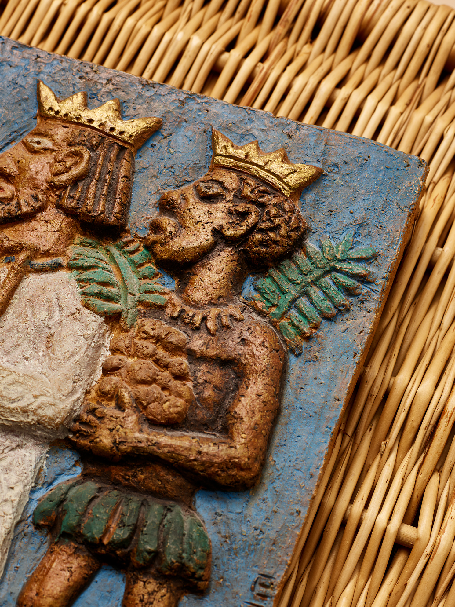 Painted stoneware Wall relief of the Three Wise Men by Åke Holm, Sweden