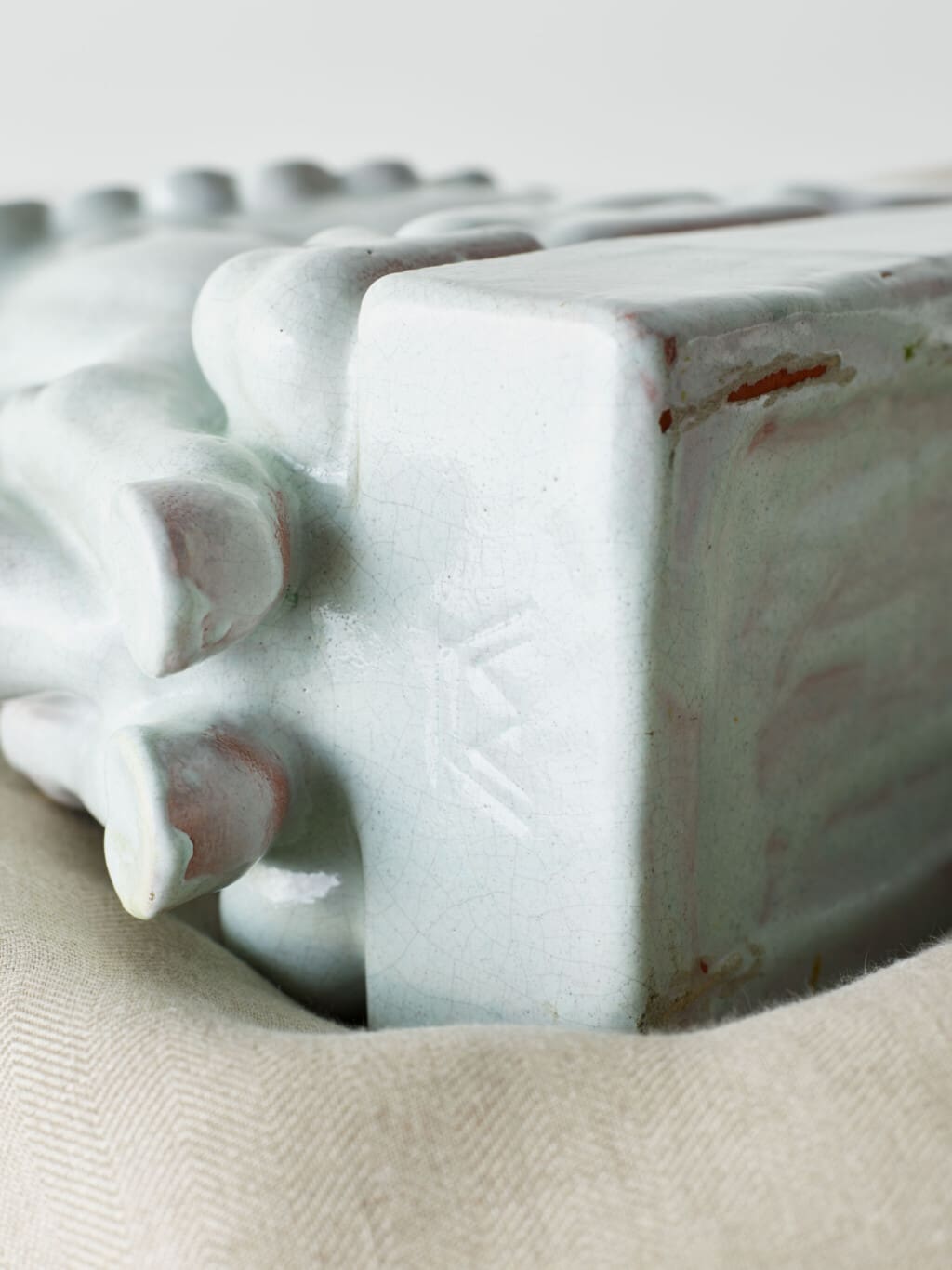 Arno Malinowski’s Pegasus is a beautifully detailed representation of the mythological winged horse, created in stoneware or porcelain. This piece captures Malinowski’s signature style, blending mythological themes with sleek, refined lines that emphasize the strength and grace of Pegasus. The figure is presented in a minimalist yet elegant Art Deco style, with pronounced wings and a robust form. Malinowski’s background as a designer for Georg Jensen and the Royal Danish Porcelain Manufactory influenced his ability to create pieces that feel both timeless and distinctly Scandinavian in their simplicity.