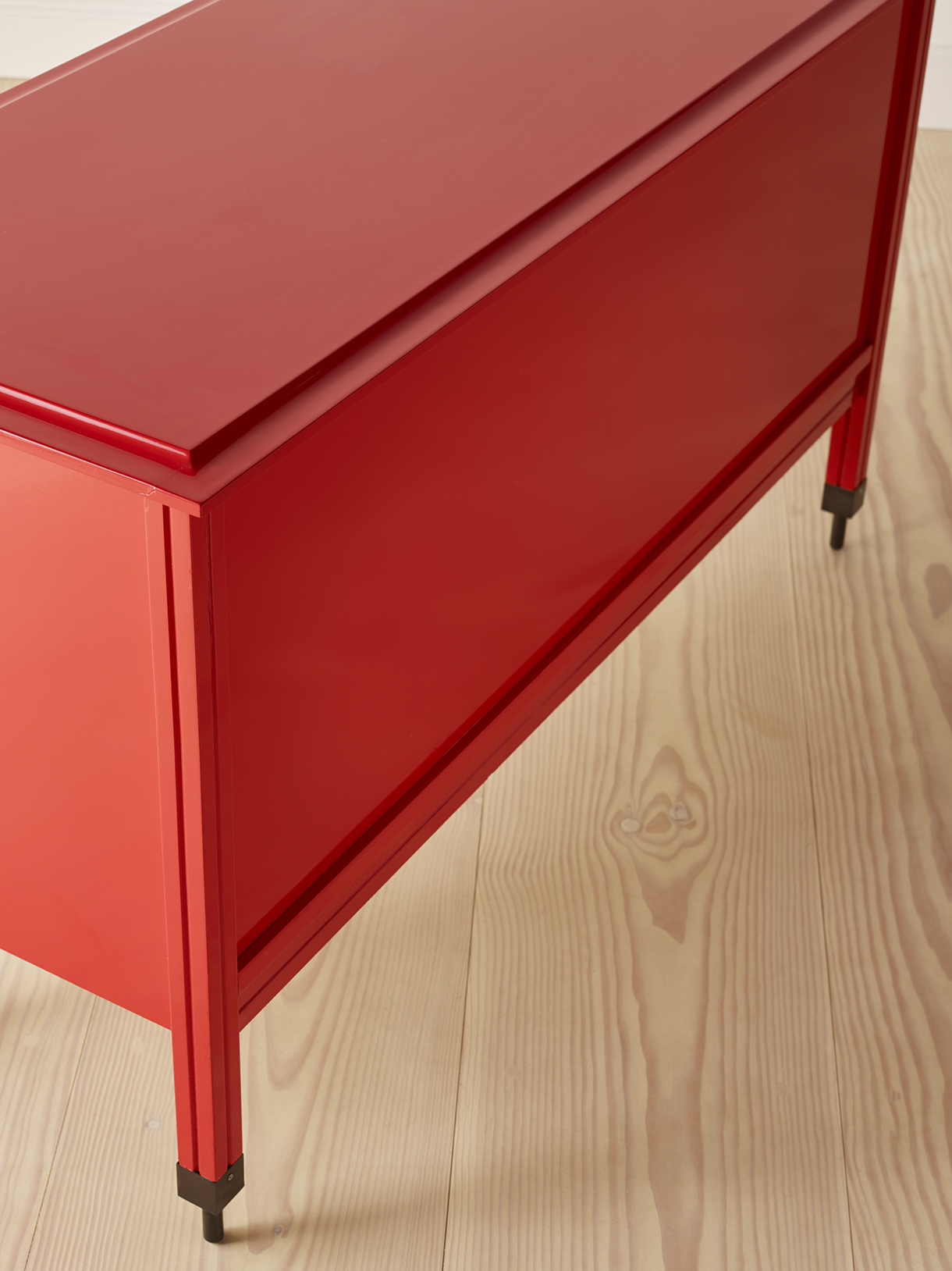 Red Lacquered Chest of drawers by Carlo De Carli for Sormani