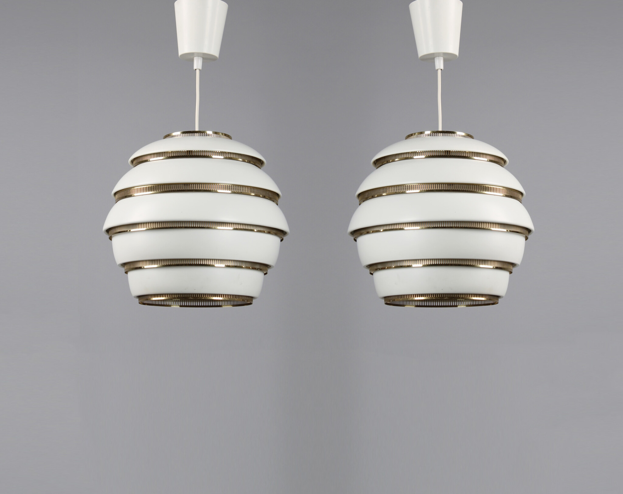 A pair of Alvar Aalto designed ceiling lamps, Beehive